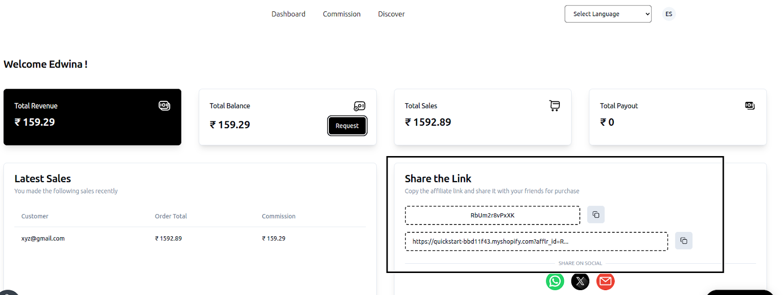 By logging in with their email, affiliates can not only retrieve their affiliate link but also review their performance metrics.